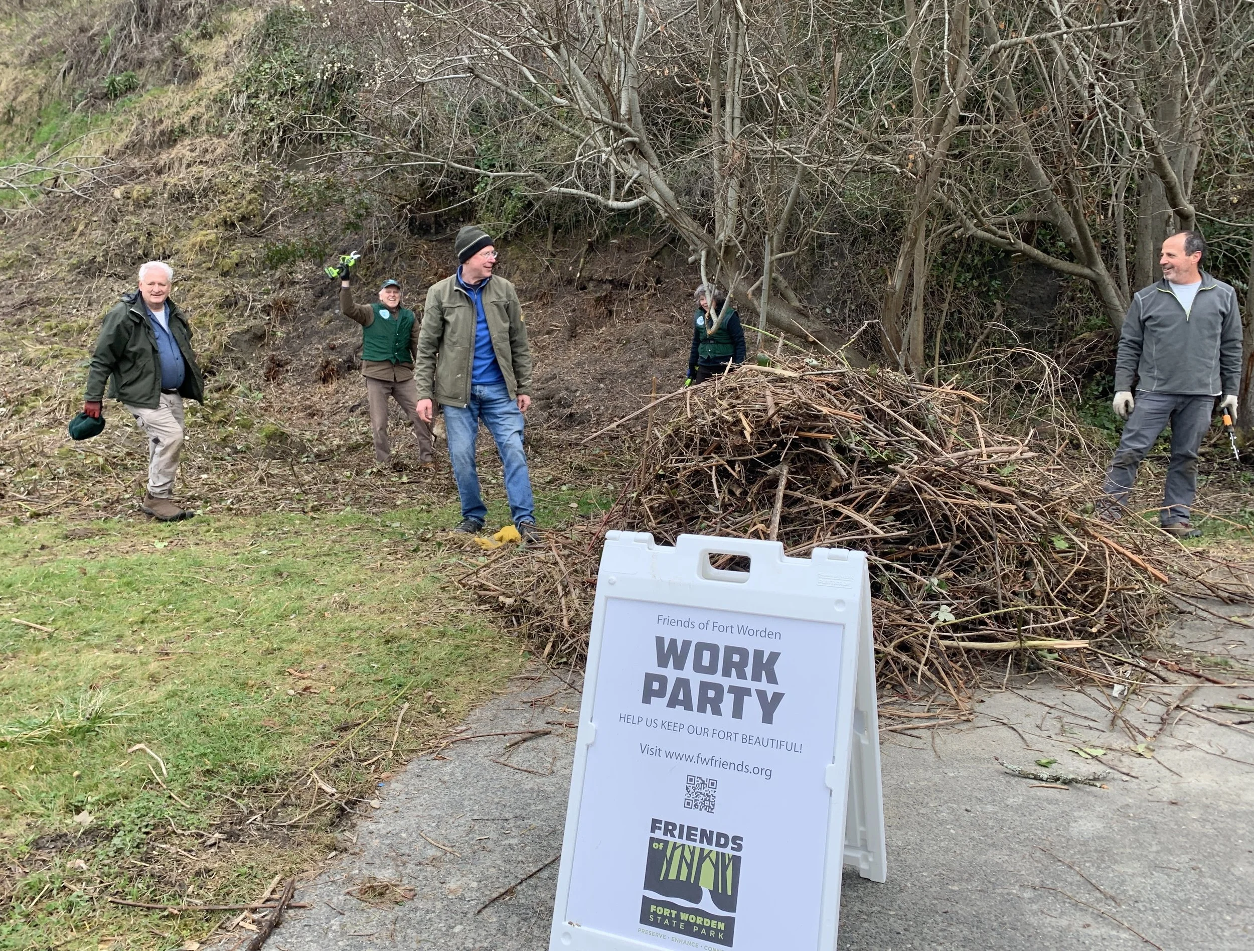 The Friends of Fort Worden Trail Team plays a valuable role in helping Fort Worden State Park to maintain and enhance the many trails and natural spaces found within the park. The group organizes work parties throughout the year to provide trail maintenance, signage, invasive plant control, and other special projects that enhance FWSP visitor experience.